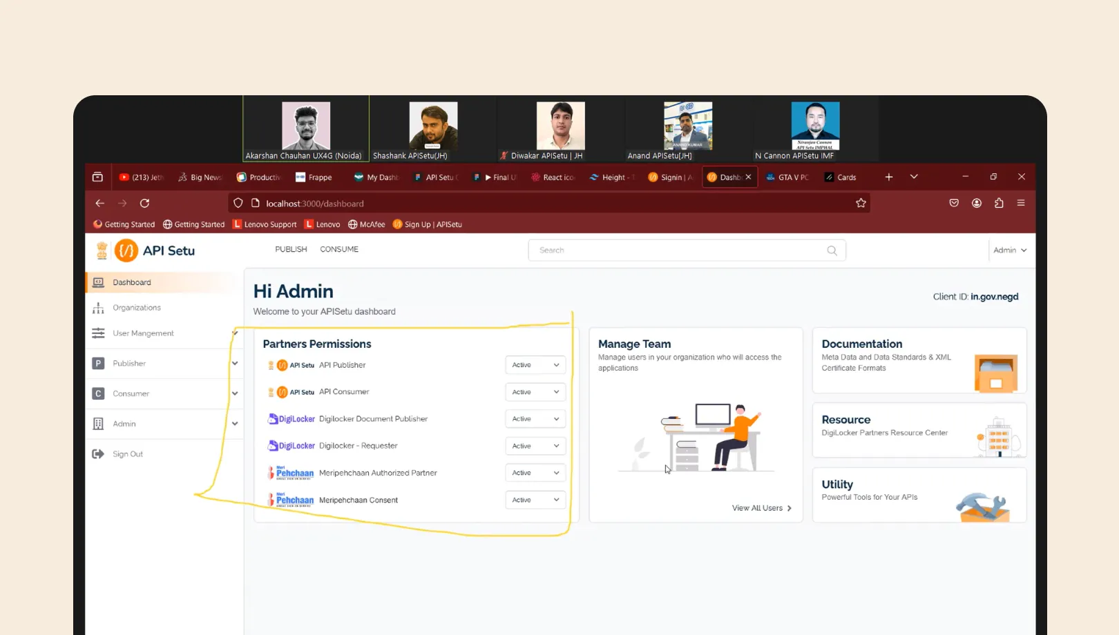 Admins finally had a home screen. Teams, roles, permissions, member management, all there. Onboarding requests are reviewable with actual context. Partner service requests from DigiLocker and others have a proper approval flow built in.