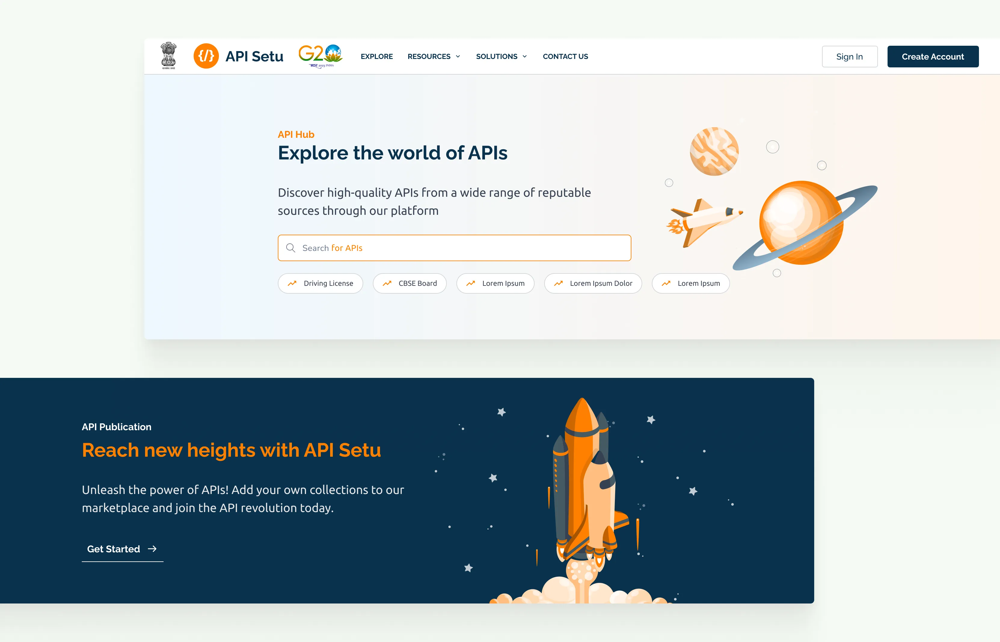 The old homepage was too casual. The obvious fix was to go corporate and clean. But that felt wrong too. API Setu needed to feel like somewhere worth being, not just somewhere official. It needed to attract developers who had platforms like Postman as their reference points.