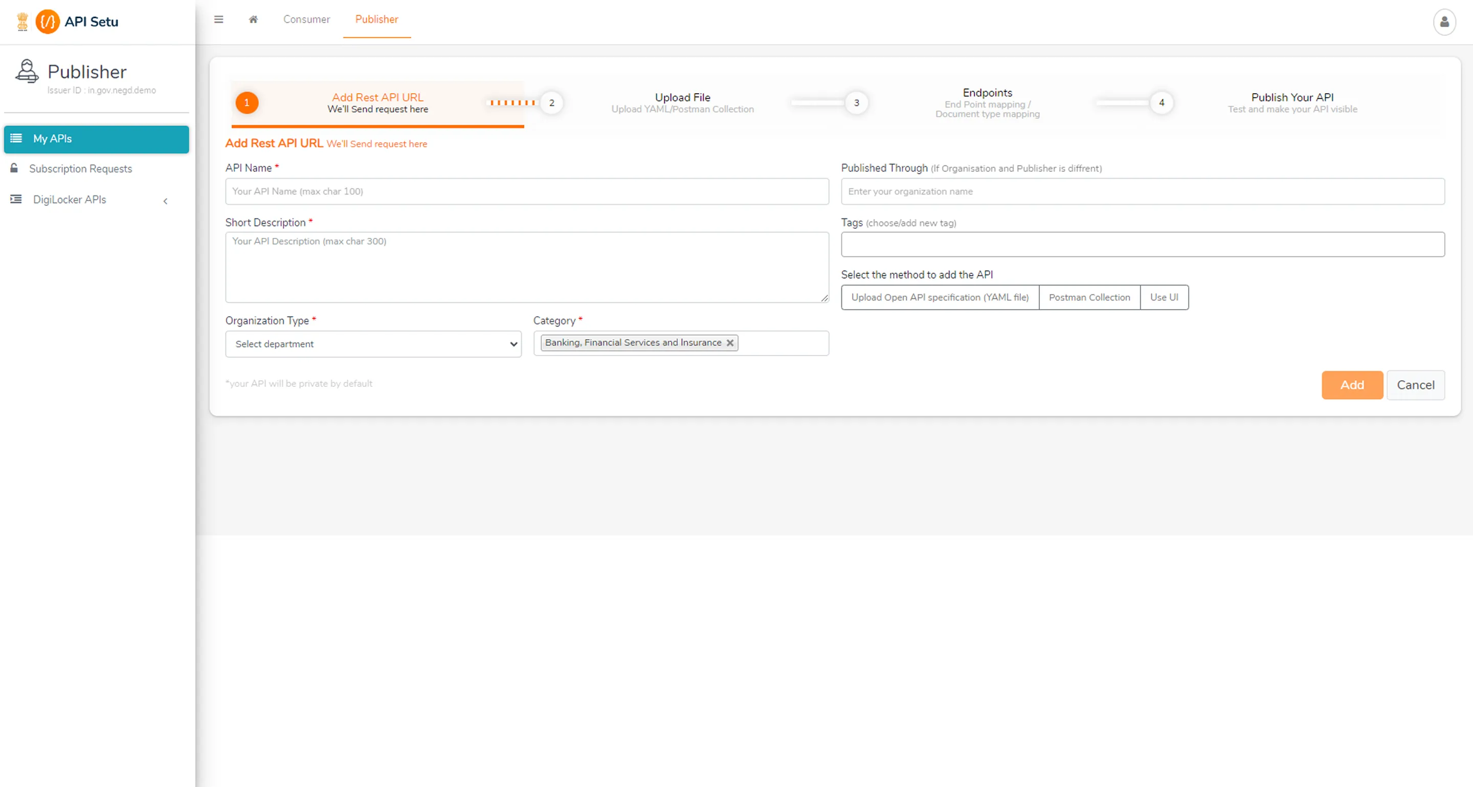 API setu admins can efficiently manage organization requests for Digital India partner services. They review use cases and organization profiles to make informed approval decisions, enhancing partnership and service management.