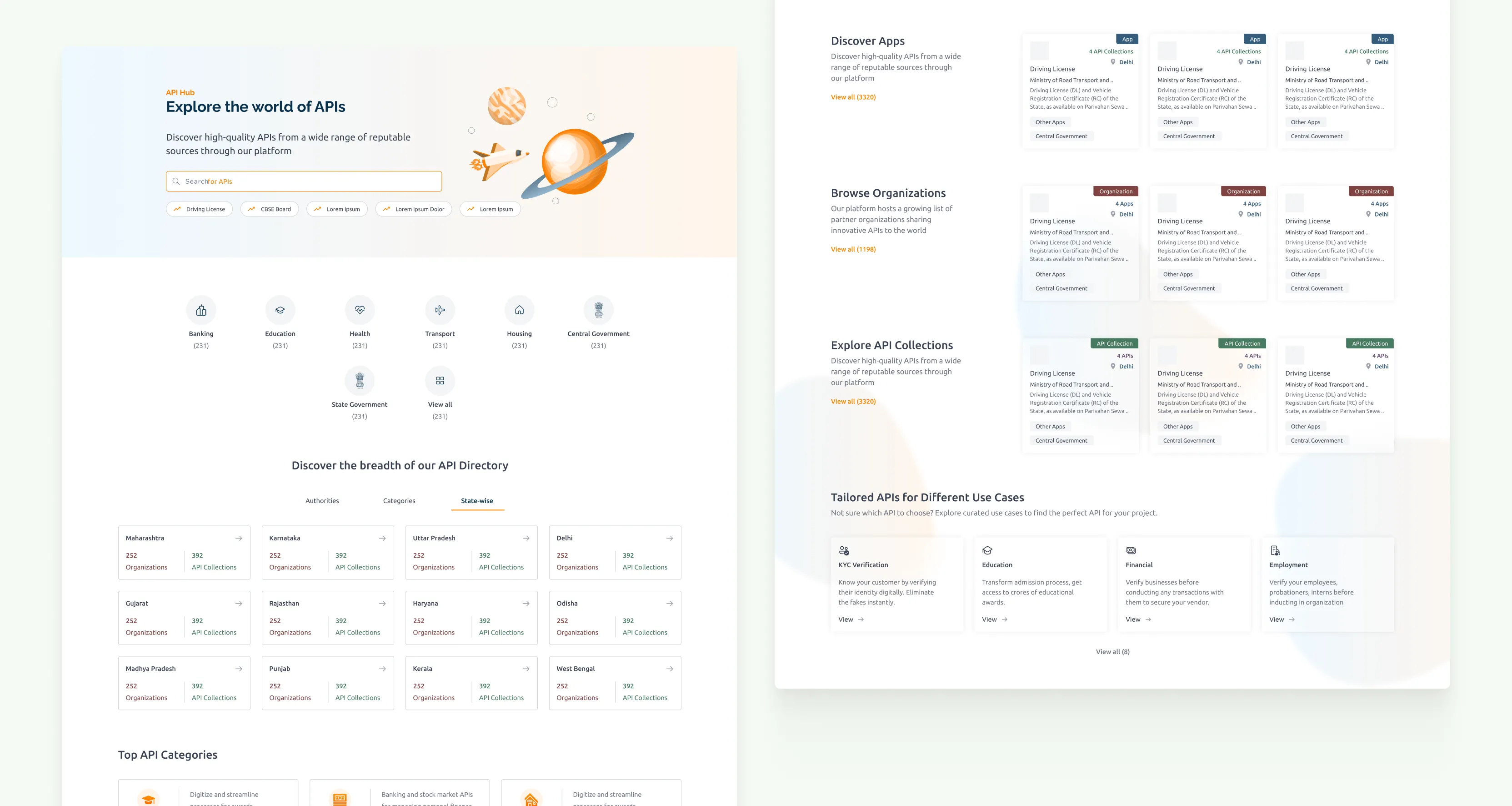 I came in as the UX lead from UX4G, I redesigned the end-to-end platform: the public-facing website, the API publishing workspace, the discovery and consumption flows, and the admin controls for managing organisations.