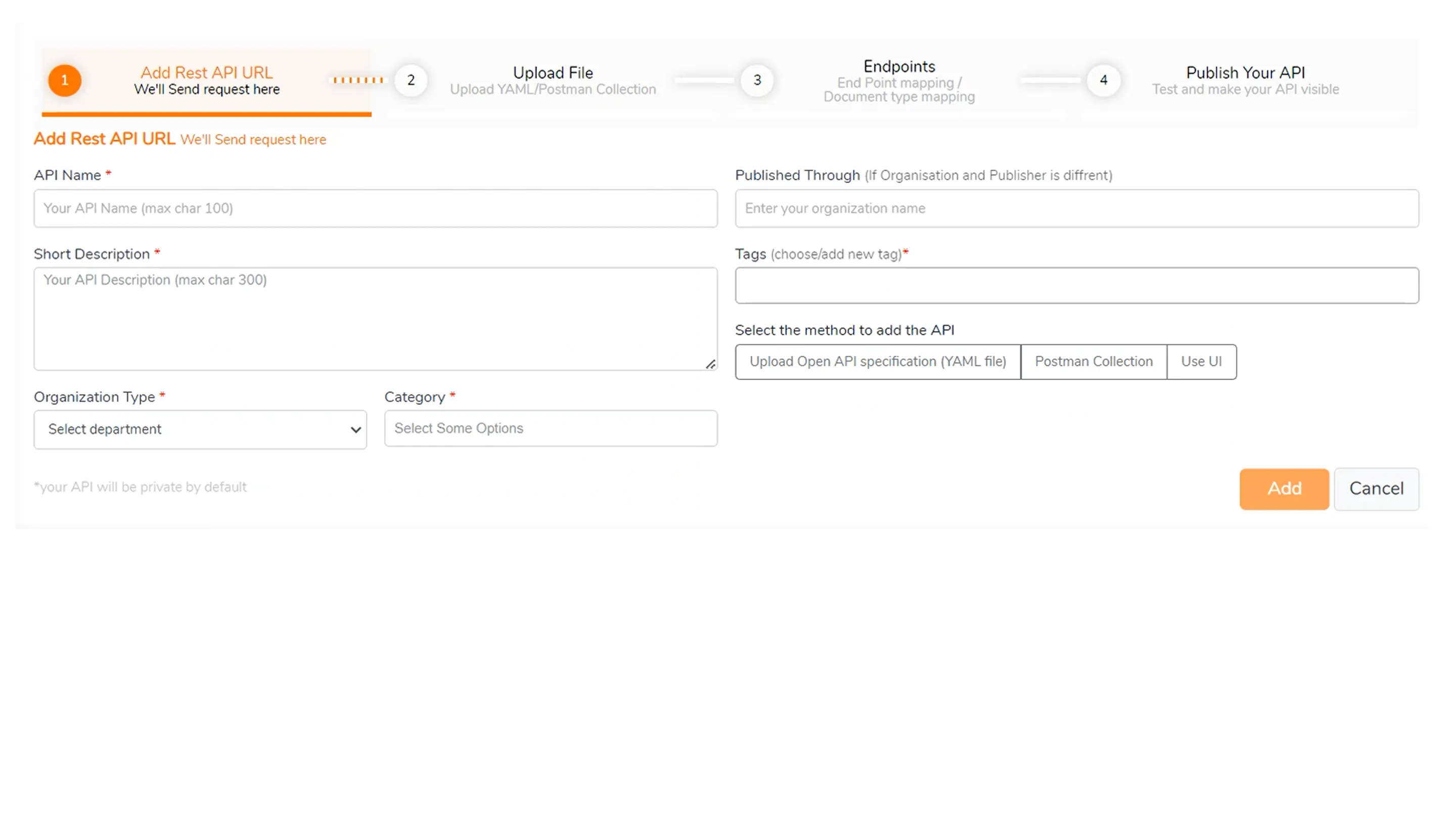 I created a straightforward six-step publishing flow for new users that aligns better with the mental model of our target audience: developers looking to publish APIs for public consumption. These steps won't be pushed to experienced users who choose their own sequence based on their workflow.